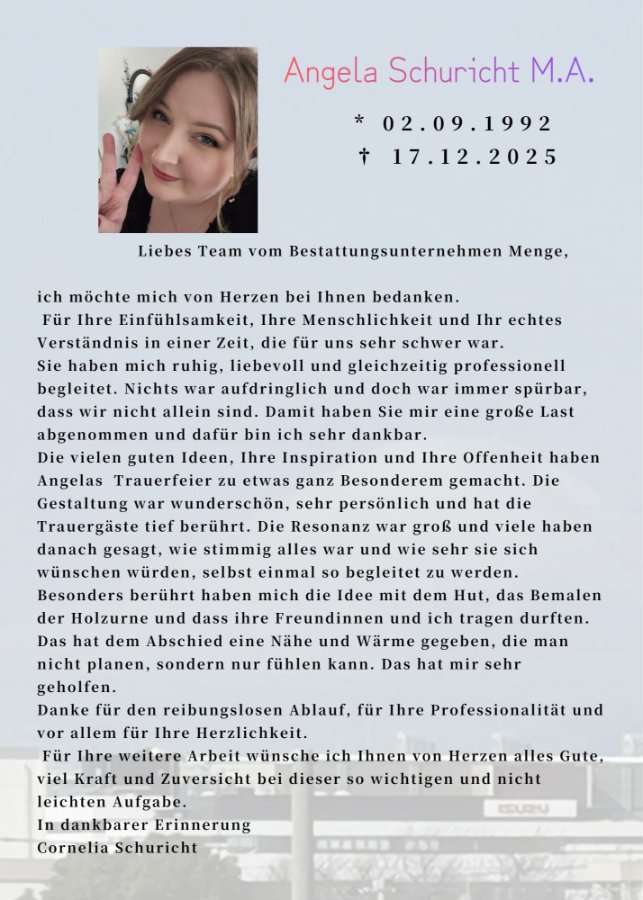 Wir haben uns nach der Bestattung sehr über die liebe Rückmeldung von Angelas Mutter gefreut – das bedeutet uns viel: