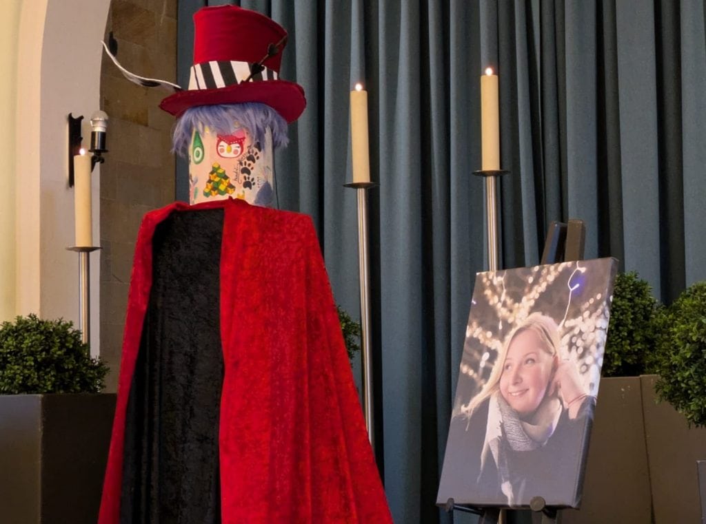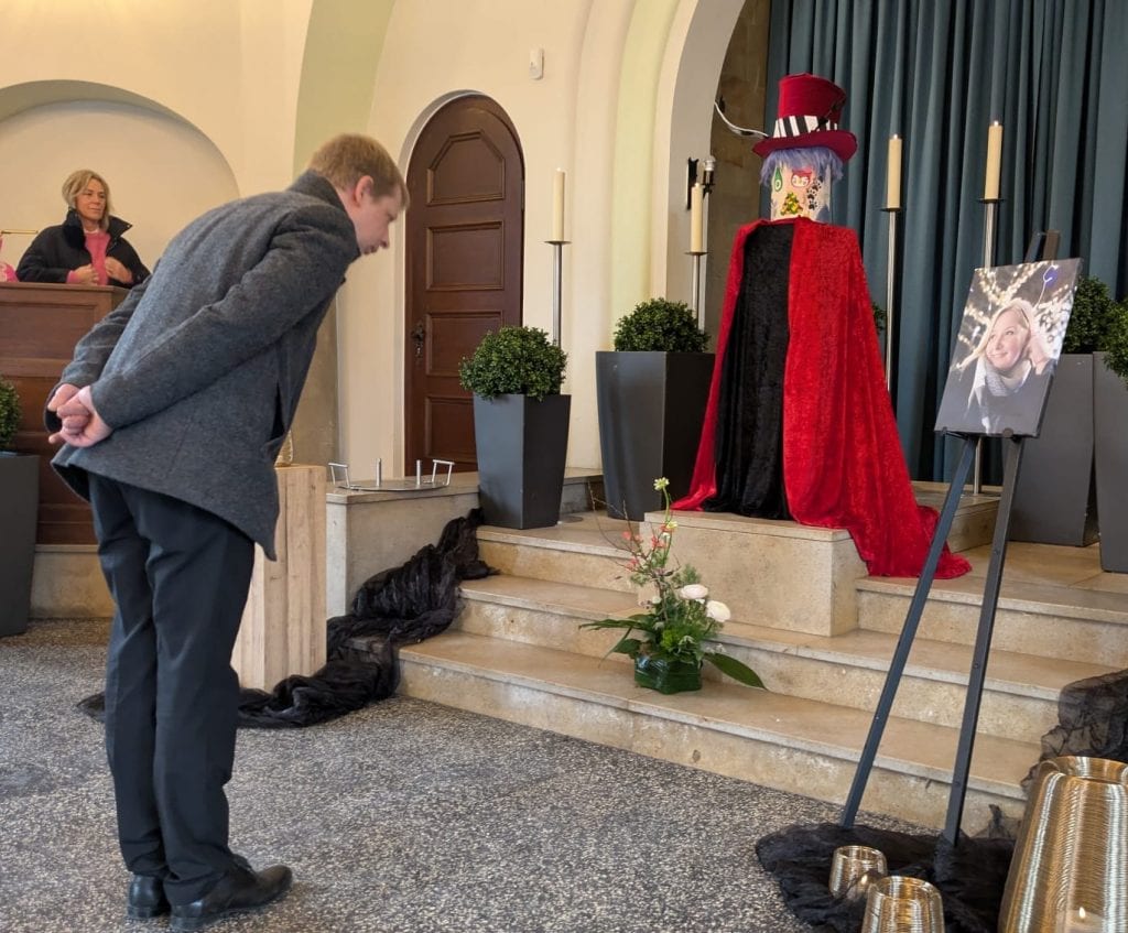 Die Wahl fiel auf eine schlichte Holzurne, die von Angelas Freundinnen mit viel Liebe, passenden Motiven und leuchtenden Farben gestaltet wurde. Während der Trauerfeier wurde diese zusätzlich mit dem Hut und der Perücke ihres Cosplay-Kostüms geschmückt – ein stiller, aber kraftvoller Gruß an das, was sie so sehr geliebt hat.